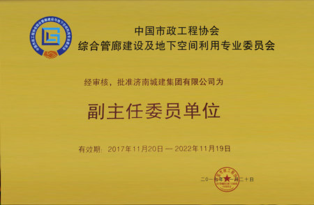 集团荣获中国市政工程协会综合管廊建设及地下空间利用专业委员会副主任委员单位荣誉称号