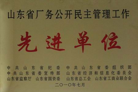 山东省厂务公开民主管理工作先进单位