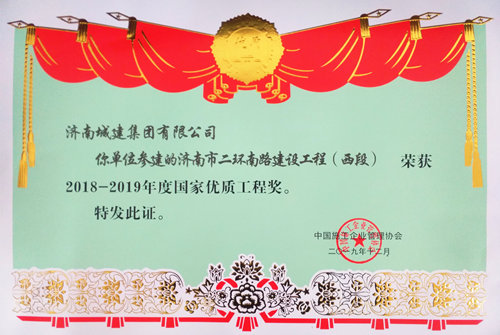 济南市二环南路建设工程(西段)荣获“2018-2019年度国家优质工程奖”