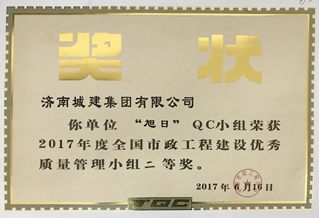 “旭日”QC小组荣获2017年度全国市政工程建设优秀质量管理小组二等奖