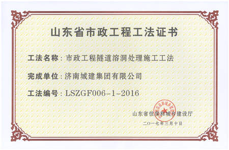 市政工程隧道溶洞处理施工工法LSZGF006-1-2016