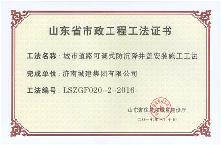城市道路可调式防沉降井盖安装施工工法LSZGF020-2-2016