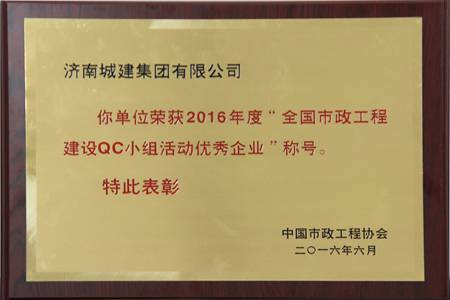 集团荣获2016年度“全国市政工程建设QC小组活动优秀企业”称号