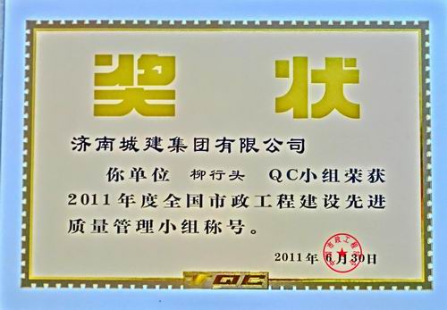 “柳行头”QC小组荣获2011年度全国市政工程建设先进质量管理小组称号