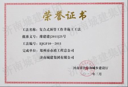 “成功”QC小组荣获2011年度全国市政工程建设优秀质量管理小组二等奖