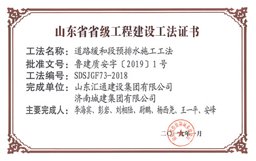 ¼¯ÍÅ¡°µÀ·»ººÍ¶ÎÔ¤ÅÅˮʩ¹¤¹¤·¨¡±±»ÆÀΪɽ¶«Ê¡Ê¡¼¶¹¤³Ì½¨É蹤·¨